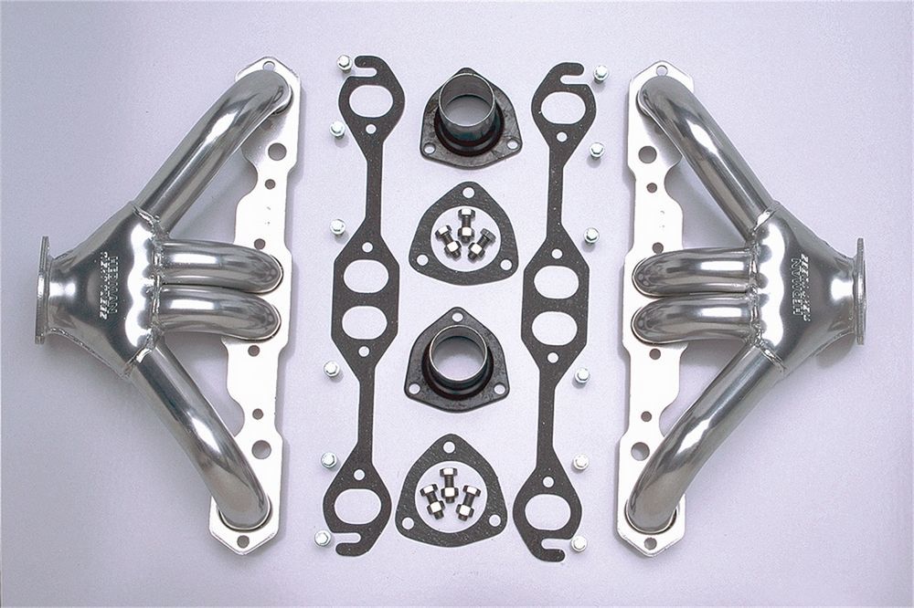 Headers - Tight Tubes - Short - 1.625 in Primary - 2.5 in Collector - Gaskets / Hardware / Reducers Included - Steel - Silver Ceramic - Small Block Chevy - Street Rod - Chevy Fullsize Car 1955-57 - Pair