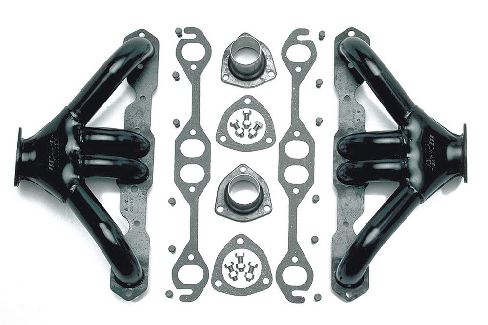 Headers - Tight Tubes - Short - 1.625 in Primary - 2.5 in Collector - Gaskets / Hardware / Reducers Included - Steel - Black Paint - Small Block Chevy - Street Rod - Chevy Fullsize Car 1955-57 - Pair